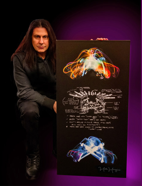 The first art piece Mangini has completed in four years has arrived to close out 2020. Super Set Theory was created originally for the Dream Theater road crew, giving them "fair warning" of Mangini's vision for a colossal drum kit for the upcoming tour...one that would be a challenge to set up just right. What began as a comical sketch turned into a magnificent work of art that is available now to collectors worldwide. Each measures 40"x 20" on canvas. All are numbered and individually signed by Mangini and SceneFour. A total of 35 are available.